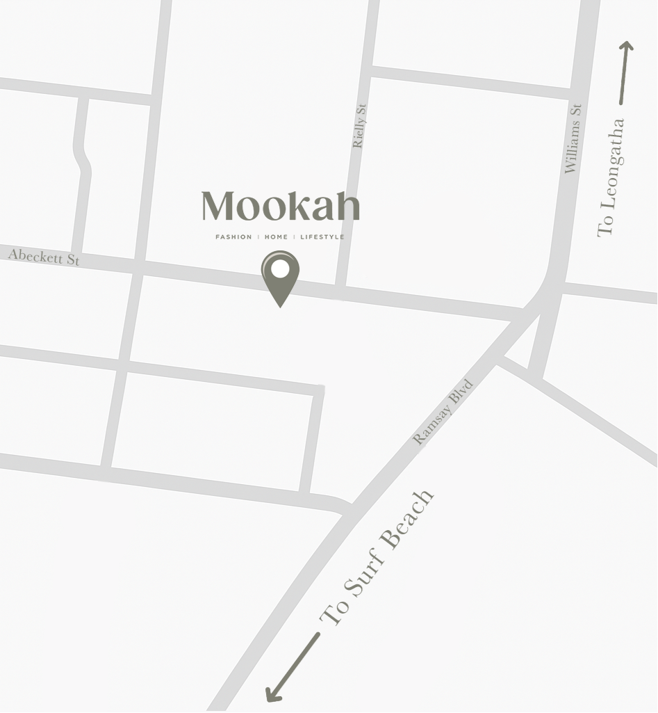 Mookah is located in Inverloch, just 1.5 hours from Melbourne on the beautiful Bass Coast of Victoria. Nestled in the heart of South Gippsland, our boutique is a favourite destination for visitors from Phillip Island, Cowes, and Leongatha. Discover our curated range of women’s clothing, homewares, and gifts from independent and sustainable brands, perfect for locals and travellers alike.